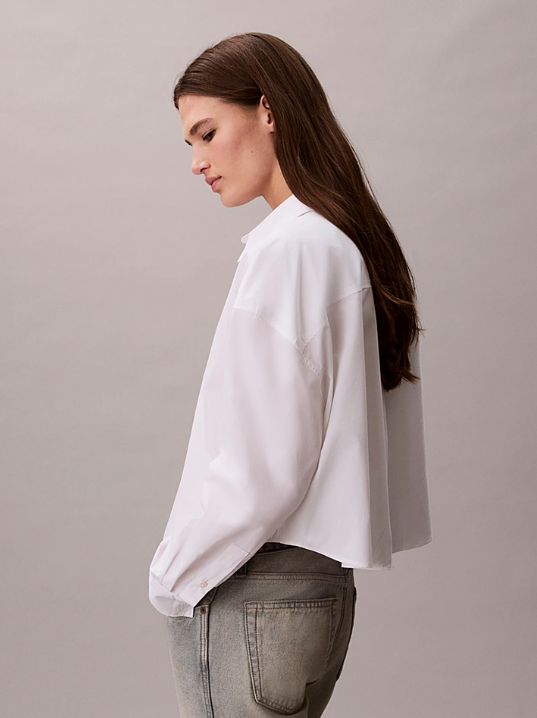 Poplin Relaxed Cropped Button-Up Shirt - Calvin Klein